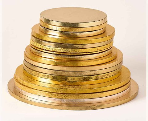 บอร์ดเค้กกลมสีทอง8นิ้ว10นิ้ว12นิ้วเครื่องมือทำเค้กกระดาษแข็งแบบออกแบบได้ตามต้องการ